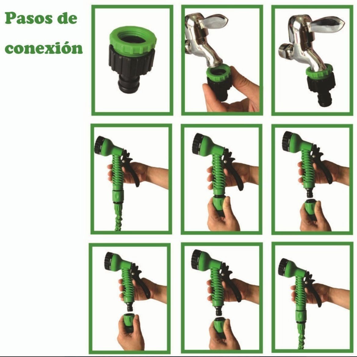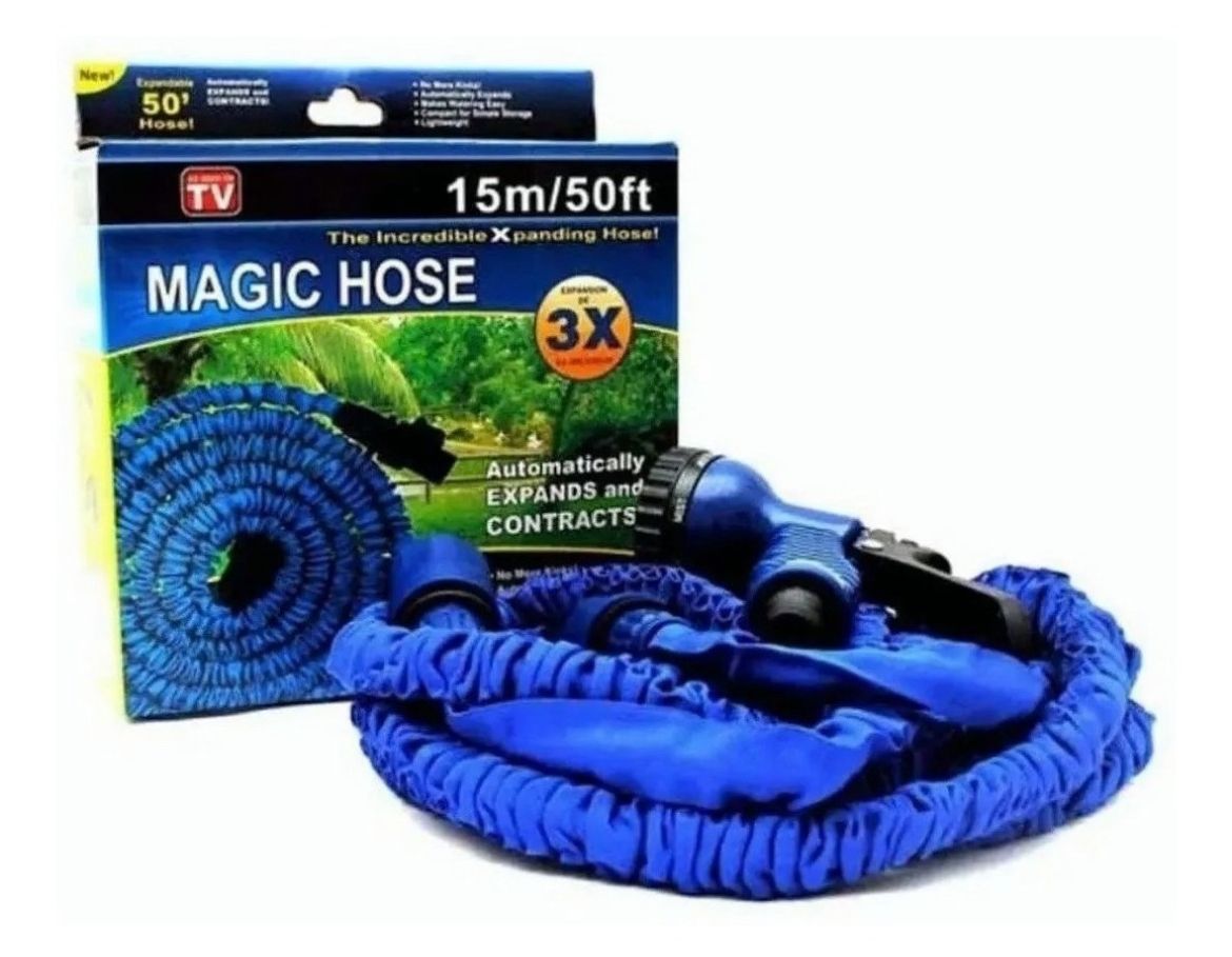 La "Magic Hose" es una manguera expandible de 15 metros (50 pies) diseñada para facilitar el riego y otras tareas al aire libre. Sus características incluyen: