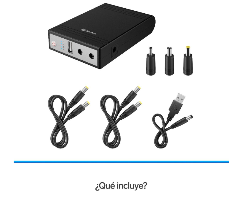 *Nota: Para conectar equipos como cámaras Wi-Fi, switches Ethernet, relojes checadores u otros, podría ser necesario adquirir por separado un eliminador de 12 Vcc 2 A para alimentar el mini No Break.
